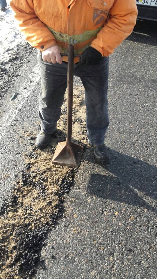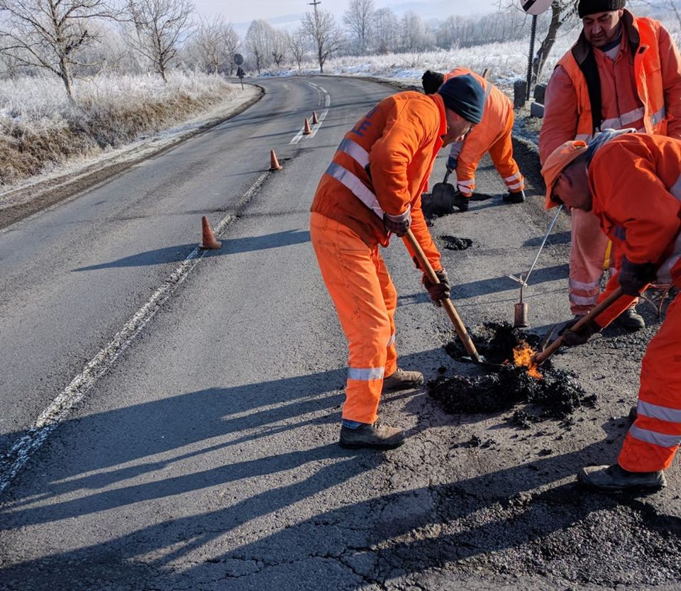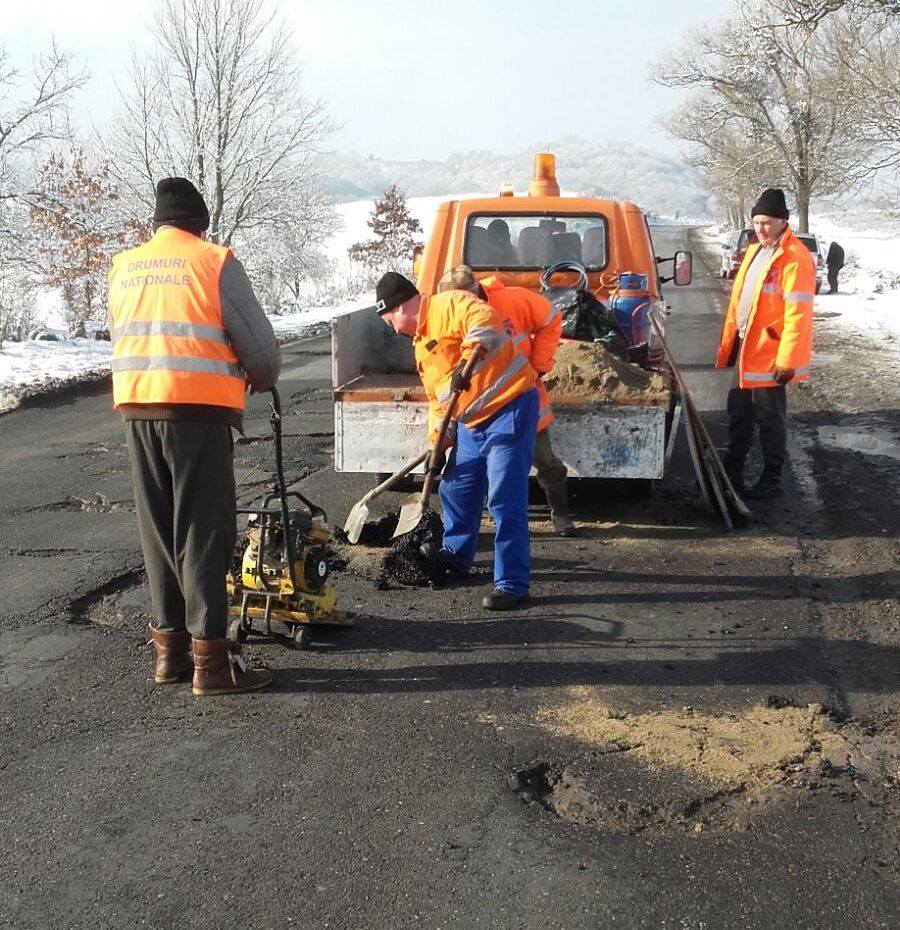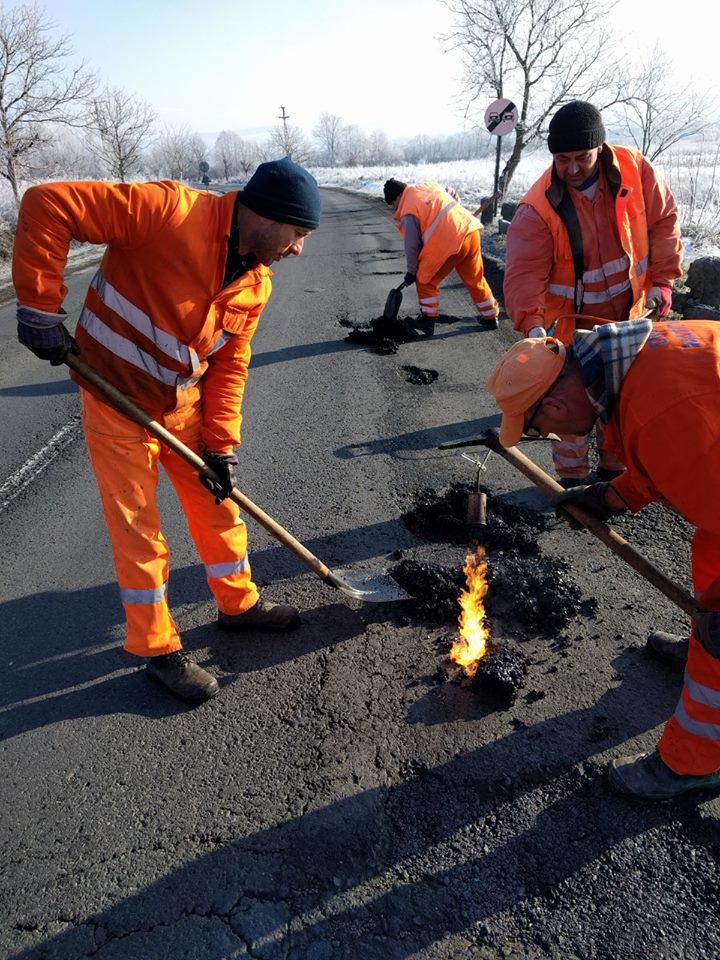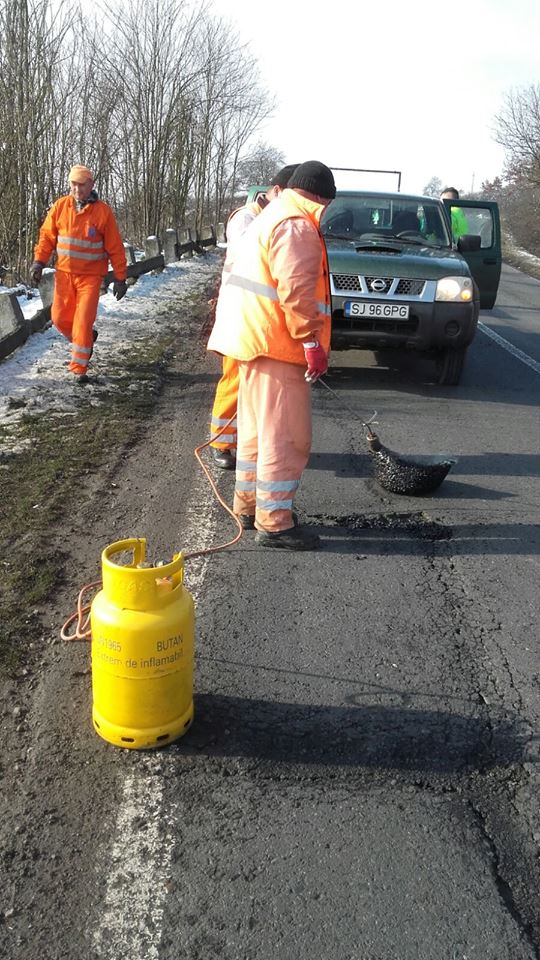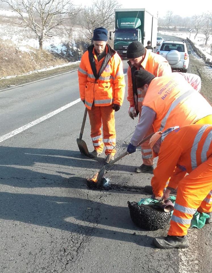 Partea bună a poveştii: drumarii au ieşit în frig să reparte gropile de pe şoseaua dintre Săcămaş şi Ohaba chiar şi într-o zi în care majoritatea angajaţilor companiilor şi instituţiilor de stat au fost liberi. Partea care nu dă deloc bine în ochii şoferilor: gropile sunt astupate cu „asfalt la pungă”, încălzit la flacăra gazului provenit dintr-o butelie clasică. Se pare că aceasta este singura tehnologie deţinută şi agreată de CNAIR (structura care gestionează drumurile naţionale din toată ţara) pentru astfel de reparaţii. „Reparaţiile care se execută în timpul iernii, la temperaturi de sub 10 grade, sunt provizorii şi se fac cu o mixtură stocabilă. Această mixtură se aşterne şi se compactează indiferent de condiţiile meteo şi de forma gropii. Mixtura se livrează la sac de 20 de kilograme. Pentru a repara gropile în timpul iernii nu există o tehnologie mai eficientă decât mixtura stocabilă. Aceste reparaţii sunt, după cum spuneam adineaori, provizorii. După încheierea sezonului rece se vor face reparaţii cu mixtură asfaltică la cald”, spune Alina Sabou, purtătorul de cuvânt al DRDP Timişoara.