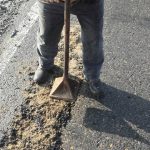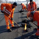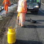 (GALERIE FOTO) România mileniului III. Gropi astupate cu „asfalt la pungă” încălzit la butelie
