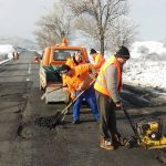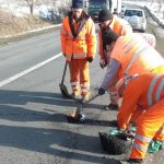 DRDP Timişoara a publicat ieri mai multe imagini cu acţiunea de „plombare” a DN 66 A, un drum care, în ultimii doi ani, a devenit de 10 ori mai aglomerat şi, automat, mai uzat decât înainte.