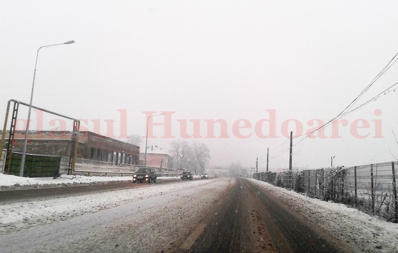 Azi dimineaţă, la ora 10.00, pe cel mai circulat drum judeţean, între Hunedoara şi Sântuhalm, era utilizabilă doar câte o bandă pe sens. Noroc că, pe la noi, iarna nu e mai lungă de cinci luni pentru că, altfel, lărgirea drumului la două benzi pe sens (în 2007 – 2009 de Consiliul Judeţean dintr-un împrumut bancar şi în 2015 – de Primăria Hunedoara din bani europeni) ar fi însemnat milioane de euro aruncate degeaba. O oră mai târziu localnicii din comuna Cerbăl încă mai aşteptau deblocarea drumului care face legătura cu Hunedoara: „Să nu vă puneţi pe drum spre Cerbăl că nu se poate urca. Am şi anunţat drumul ca fiind închis la cei de la Poliţie. Aşteptăm să vedem când apar şi cei de la firma angajată de Consiliul Judeţean să-l deszăpezească”, spunea primarul comunei, Miron Ticula. În aşteptarea „lamei” erau ieri şi localnicii din Bunila, însă aveau motive să fie ceva mai optimişti: „Stratul de zăpadă are 30 de cm. Aşa, mai greu, a ajuns maşina cu pâine. Aşteptăm să vină şi utilajul de deszăpezire. Am înţeles că era undeva pe la Ghelari, un pic mai devreme”, mărturisea primarul Nelu Oprişoni.
