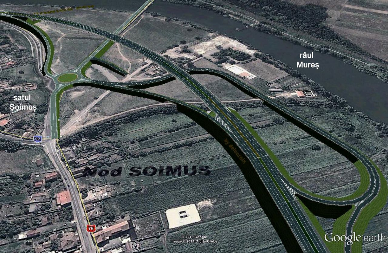 Conform primarului comunei Şoimuş, Mihai Irimie (cel care a publicat, de fapt, imaginea), iniţial au existat trei variante de conectare a traficului de pe DN 7 şi DN 76 cu autostrada. „Prima variantă persupunea un giratoriu construit suspendat deasupra actualului pod ce trece Mureşul şi urcări-coborâri pe pod, ceea ce ar fi determinat ample schimbări ale structurii podului. A doua se limita la mutarea actualului giratoriu (situat pe malul Nordic al Mureşului – n.red.) doar câţiva metri mai înspre satul Şoimuş şi cam atât, variantă care nu ştiu cât de funcţională ar fi fost. Cea de-a treia este cea publicată şi aprobată de CNADNR. Din câte-am înţeles, nodul va fi gata în iulie, anul viitor”, adaugă Mihai Irimie.