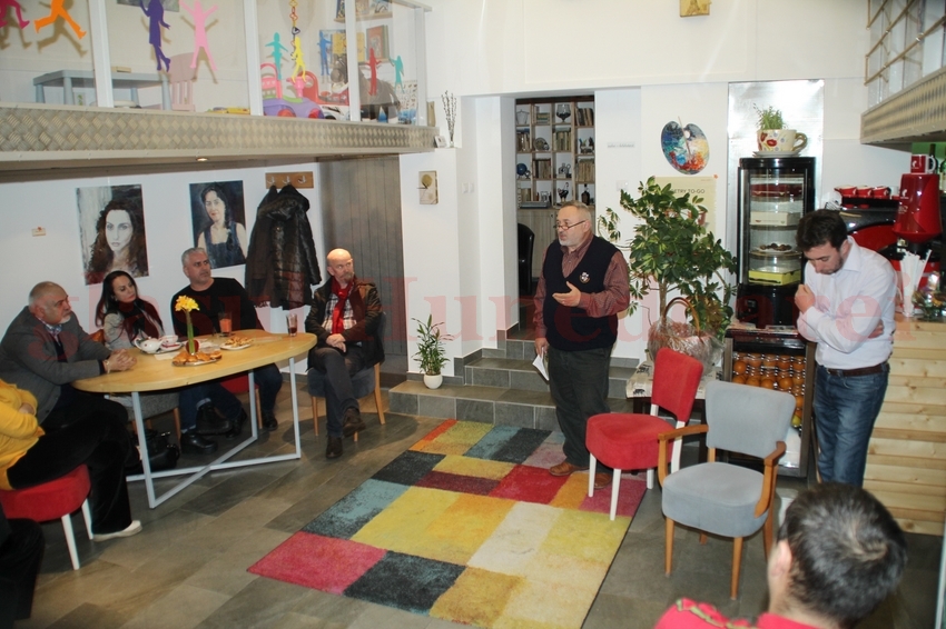 Amfitrioana evenimentului, Alina State, proprietara cafenelei, a salutat prezența artistului din Alba Iulia pe simezele de la „Jos pălăria”. „Îl cunosc pe Cătălin de mai bine de 15 ani. Am admirat întotdeauna lucrările lui. Mi-a marturisit odată că visul lui este să aibă o expoziție personală. Am ajuns acasă și i-am făcut o pagină de Facebook. I-am spus atunci că poate să aibă câte expoziții vrea în lumea virtuală. Între timp, lucrările lui Cătălin au fost expuse în mai multe galerii de artă și mă bucur că astăzi putem să-i găzduim aici, la cafeneaua noastră, o expoziție”, a spus Alina State. Lucrările expuse au fost apoi analizate din perspectiva expertului de profesorul Traian Mârza.