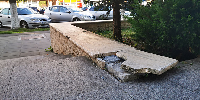 Milioane de euro a investit Primăria Devei (din bani europeni) în proiecte de „regenerare urbană”. Lucrările s-au finalizat în 2016, dar mai ales „blaturile” marmorate ale zidurilor ce mărginesc rondurile de zone verzi au început să dea semne de „oboseală” încă de prin 2017. E drept că o contribuţie au avut-o şi puştanii care le-au folosit drept rampe pentru scheme cu trotinetele, dar chiar aşa, să nu mişte nimeni nimic pentru minime reparaţii? De doi ani?!