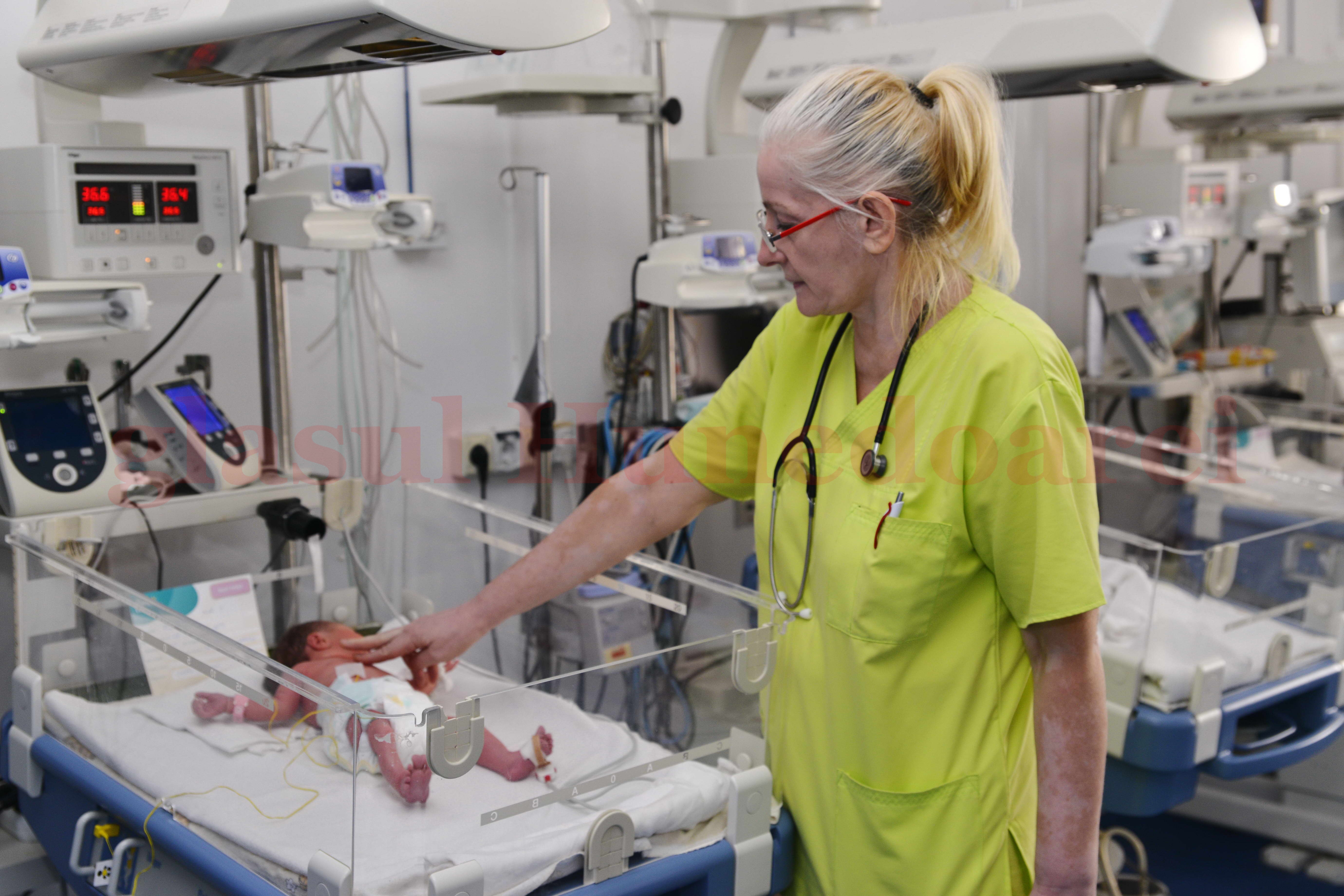 „Să nu credeţi că stau atâta în spital pentru că mi-e drag să văd pereţii ăştia albi. Sunt mai multe motive. Unul vi l-am spus deja: e o responsabilitate mare. Când iau în mâini un prematur, primul şi singurul lucru pe care-l simt e responsabilitate, curat. În momentul acela trebuie să te detaşezi de orice alt gen de sentimente. E o chestiune care i se imprimă oricărui medic încă din primii ani de facultate. Trebuie să-l reanimezi pe acel nou-născut, să-l aduci pe linia de plutire, să-l monitorizezi. Abia după ce îl aduci pe linia de plutire poţi să te gândeşti şi sentimental la problemele copilului. Am şi eu doi copii, acum sunt mari, şi-mi pare rău când văd nou-născuţi atât şi atât de fragili” mărturiseşte Camelia Ionescu. Prin mâinile ei trec anual în jur de 700 de nou născuţi, dintre care vreo 30 n-ar avea nicio şansă să trăiască dacă n-ar fi trataţi îngrijiţi de oameni ca doamna doctor şi colegele ei din secţie. „Ni se întâmplă şi nouă să mai pierdem câte-un copil născut prematur. Anul trecut au fost patru. Unul născut la Deva şi trei veniţi, in-extremis, cu mari probleme de la alte spitale din judeţ. Ne ia şi mai bine de o săptămână să ne revenim. De fiecare dată discutăm cu colegii de la Obstetrică-Ginecologie şi reluăm tot traseul medical al cazului: ce s-a administrat, când, dacă a mers, de ce nu a mers…” spune doctoriţa. Nu poate însă să spună cam unde s-ar situa Neonatologia într-un clasament al dificultăţii disciplinelor medicale. „Noi nici nu existăm pentru marea majoritate a publicului. De existenţa noastră află doar cei care au copii născuţi prematur. Mulţi abia atunci află că există neonatolog, sau pediatru. E destul de dificil. Un născut prematur se comportă total altfel ca fiziologie, fiziopatologie, ca manifestări clinice şi are patologii care nu seamănă cu ale adultului. Sunt patologii specifice nou născutului. Nou-născutul trebuie să-l vezi în 5 secunde să ştii ce manifestări are. Cum clipeşte, cu priveşte, cum ţine degetele de la mâini, de la picioare, postura mâinilor, postura picioarelor, aspectul tonic, mobilitate…. totul e diferit… Nou născutul nu e un adult. E… aşa… un extraterestru” glumeşte doctoriţa.
