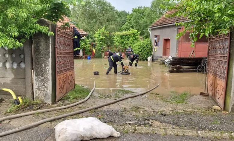 Pompierii acţionează pentru scoaterea apei din subsoluri şi anexe în Tâmpa, Orăştie, Mărtineşti, Livadia şi Valea Lupului cu 5 motopompe transportabile, 2 remorcabile şi 8 autospeciale.