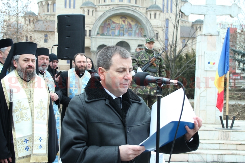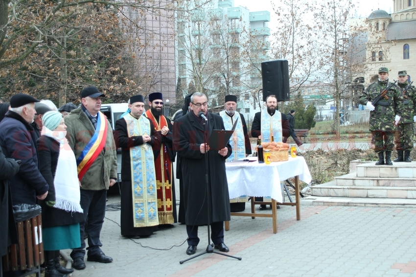 Slujba de pomenire a fost oficiată de Preasfinţitul Părinte Gurie, Episcopul Devei şi Hunedoarei, alături de un sobor de preoţi şi diaconi. Părintele a luat apoi cuvântul: „Există și astăzi în lume țări în care lucrurile acestea dramatice există în viața cotidiană. Foamea, frigul și frica, dominând în spațiul public. Fără jertfa tinerilor pe care îi cinstim acum, am fi putut fi astăzi, după aproape trei decenii, rușinea Europei. O caricatură mondială, căci dictatura pregătea o dinastie roșie, după modelul asiatic. Tot astăzi mai constatăm însă, că jertfa lor trebuie continuată. Fiecare dintre noi trebuie să ne-o asumăm sub o altă formă, respectiv fiecare trebuie să învățăm să jertfim câte ceva, pentru progresul comun. Astăzi, mentalitățile sunt foarte diferite. Lumea nu mai este dispusă la sacrificii pentru un bine colectiv. Astăzi, în ziua pioasei amintiri a Eroilor Revoluției, să ne întrebăm fiecare în parte cum ne mai exprimăm noi dragostea față de semeni”, a spus în cuvântul său PS Gurie, Episcopul Devei și Hunedoarei.