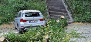 (Galerie foto)Trei autoturisme avariate în această după-masă de un copac căzut langă parcul Cetății