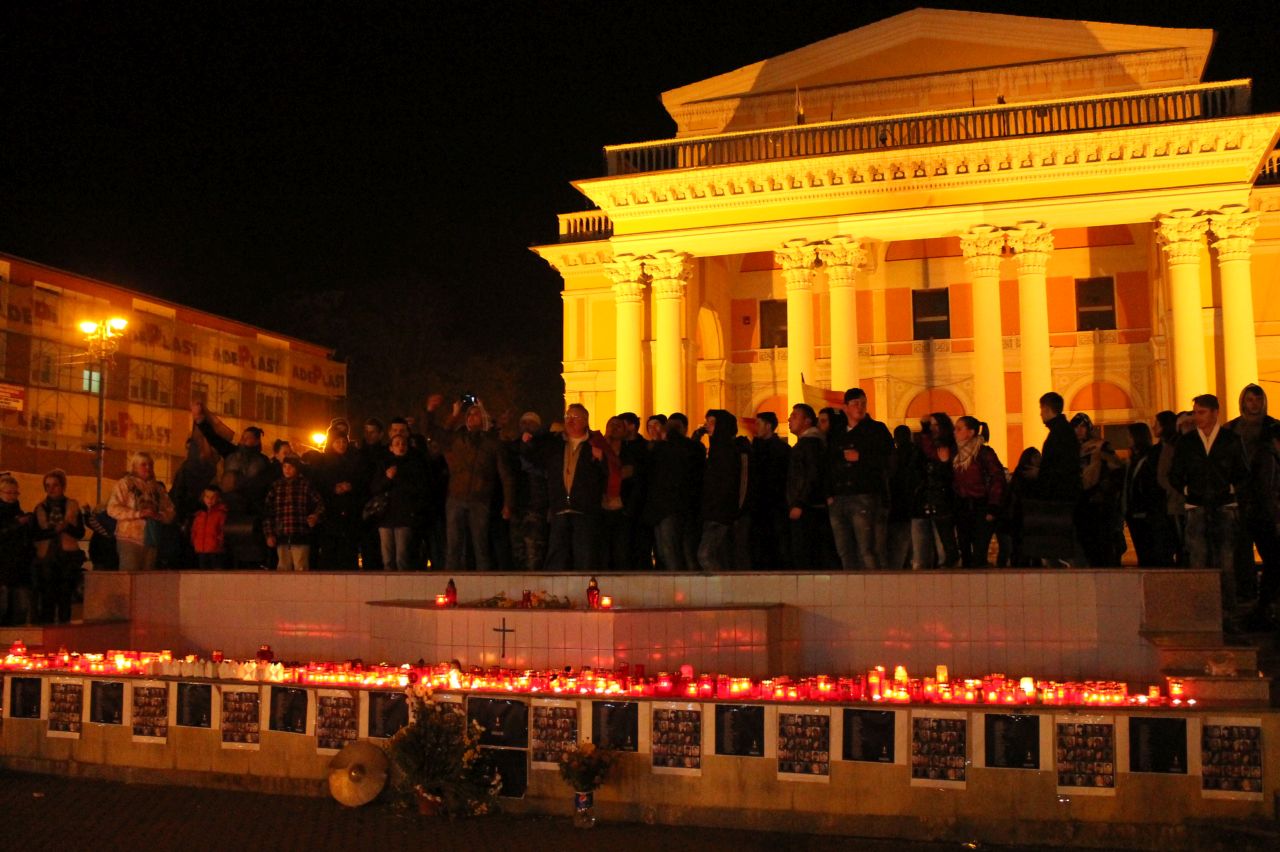 Mai întâi, participanţii la protest s-au mulţumit să discute între ei. Unii, nu puţini la număr, se apropiau din când în când de locul de pomenire a victimelor, mai aprindeau câte o lumânare şi spuneau câte o rugăciune pentru acestea. „Este un eveniment pe cât de îngrozitor, pe atât de revoltător. Am venit aici pentru că puteam fi eu în locul vreuneia dintre victime. E un amestec de revoltă şi tristeţe ce simt de câteva zile încoace”, mărturiseşte Andreea, una dintre tinerele prezente la protest. „Din vina politicienilor şi a legilor proaste pe care le fac, din vina unor funcţionari, susţinuţi tot de politicieni, s-a întâmplat ce s-a întâmplat. Nu se poate continua aşa. Pur şi simplu nu se mai poate”, spune Sergiu, un alt membru al grupului adunat miercuri seara „la Teatru”, în Hunedoara.
