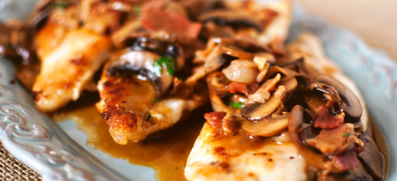 Una dintre cele mai bune variante rapide de cină – perfectă după o zi de lucru: pui Marsala. Rețeta există din secolul 19, fiind inventată de familiile de englezi care locuiau în zona de Vest a Siciliei, regiune în care se face vinul de Marsala. Deoarece la noi Marsala are un preț destul de piperat, vom folosi cea mai bună alternativă – Pinot Noir.