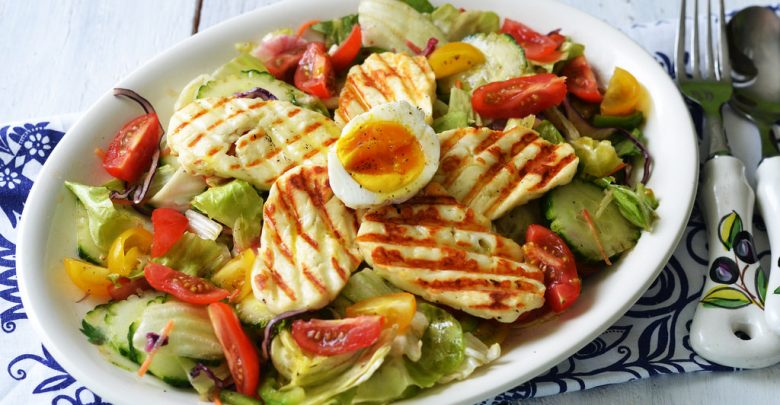 Salată cu bucăți de pui, ridichii și castraveți