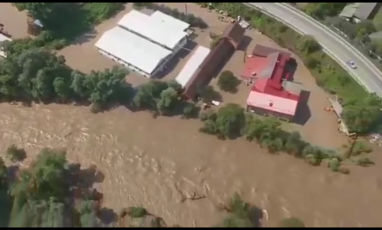 (Video elicopter)Inundații puternice în vestul Văii Jiului